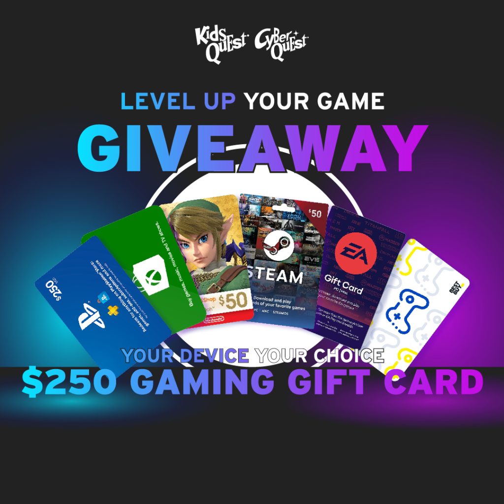 Ready to supercharge your video gaming experience? Look no further! Kids Quest and Cyber Quest have teamed up to bring you the Level Up Your Game Giveaway—and it’s bigger and better than ever! Imagine scoring one of THREE $250 Gaming Gift Cards. Choose from PlayStation, Xbox, Nintendo, Steam, EA, and more to boost your gaming gear.