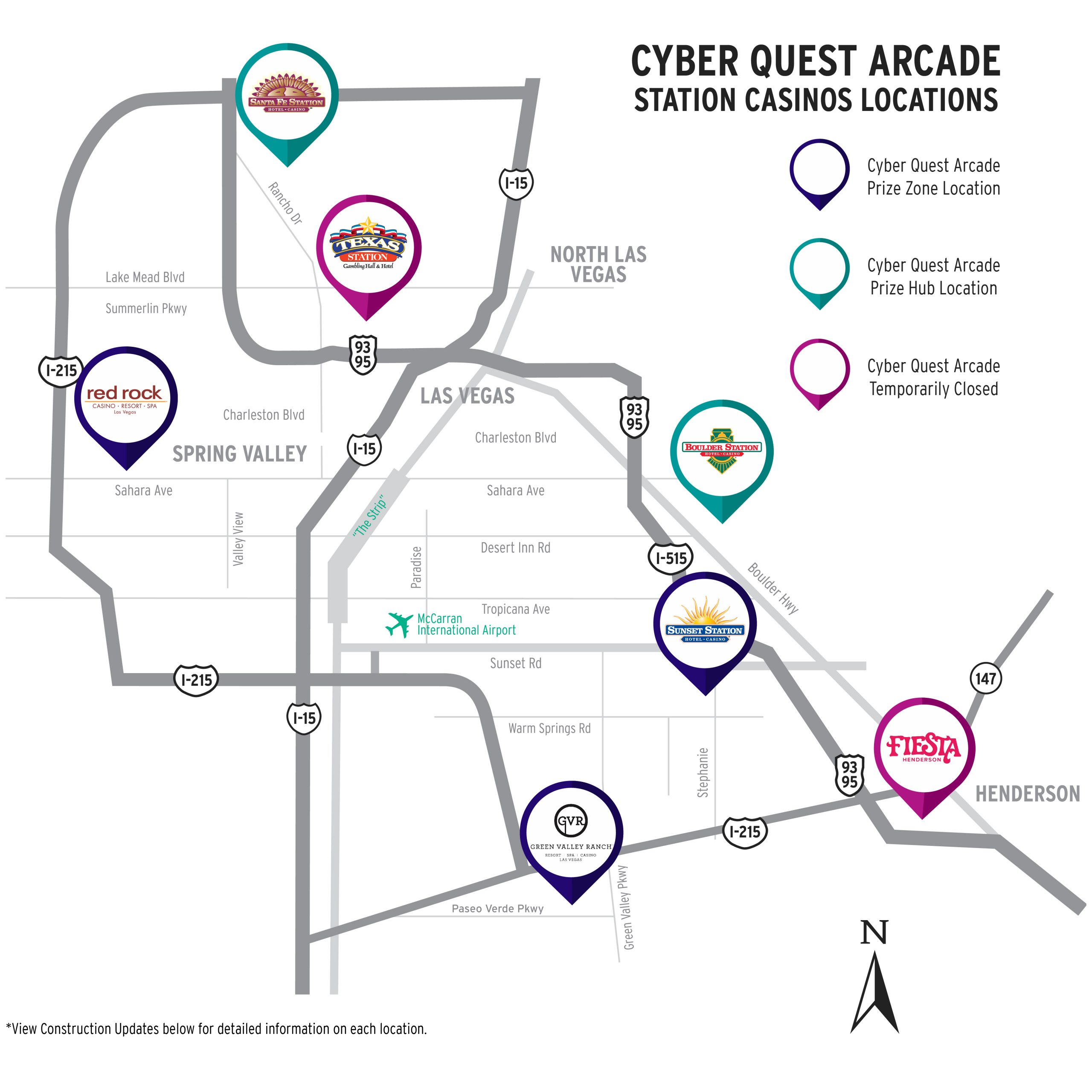 To enhance the game play experience, Cyber Quest is a token-free operation. By purchasing a re-loadable Cyber Quest Club Card, guests will be able to use it at any Station Casinos Cyber Quest Arcade. That’s right, one card for any Station Casinos Cyber Quest Arcade! Best of all, prize tickets earned at any location can be redeemed at any Station Casinos Cyber Quest location; whether at a Prize Zone or Prize Hub for prize redemption.