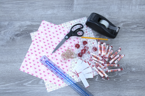 Fold the Valentine craft paper around the stick of gum and secure with tape or glue.