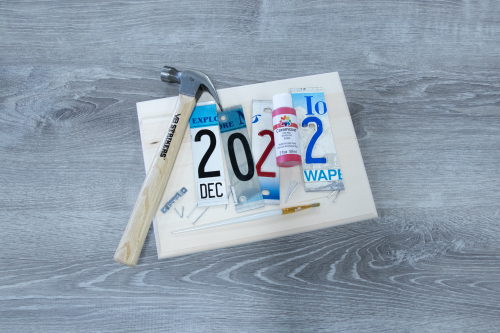 • Wood plaque or recycled piece of wood to fit your letters or numbers