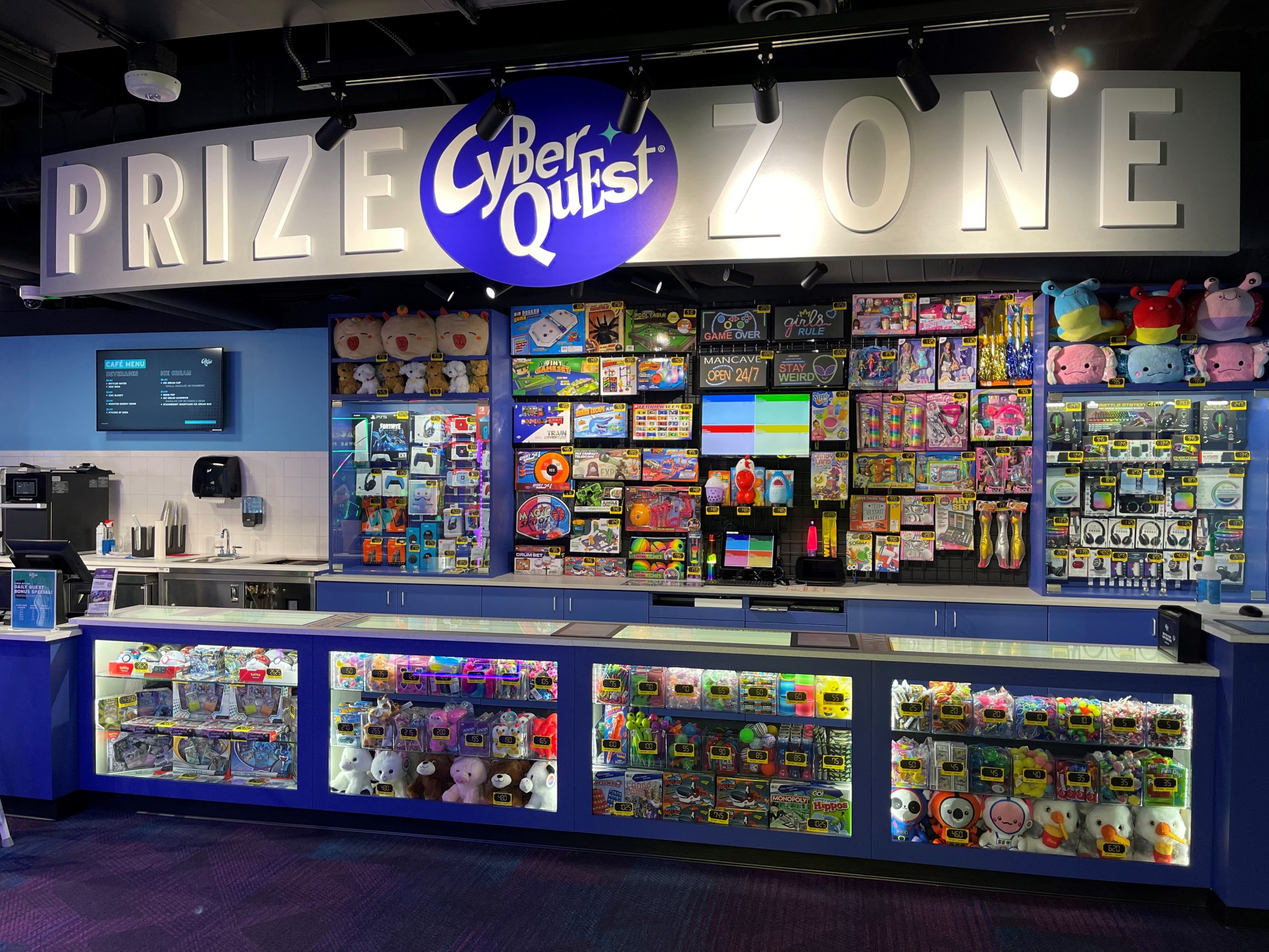 Cyber Quest is an arcade like no other! Our family-friendly entertainment venue features only non-violent game content in a bright, colorful and inviting space. In addition, at Cyber Quest we take great pride in providing a very high level of guest service and interaction from our courteous and enthusiastic team. Best of all, we program our games to deliver generous payouts for play so that everyone will enjoy their redemption experience at our signature Cyber Quest Prize Zone! The Prize Zone? Don’t miss it! There we stock everything from novelty toys and plush, to high-end technology!