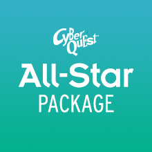 The All-Star party package has been created for the birthday child and five (5) guests. The package includes a $20 Cyber Quest Club Card per guest, 30 minutes for a birthday treat and gift opening, two (2) pitchers of fountain drink, party decorations, and paper settings, one (1) party favor per guest, one (1) digital photo of the birthday child and guests, one (1) game tournament, and 250 Prize Zone tickets for the tournament winner.