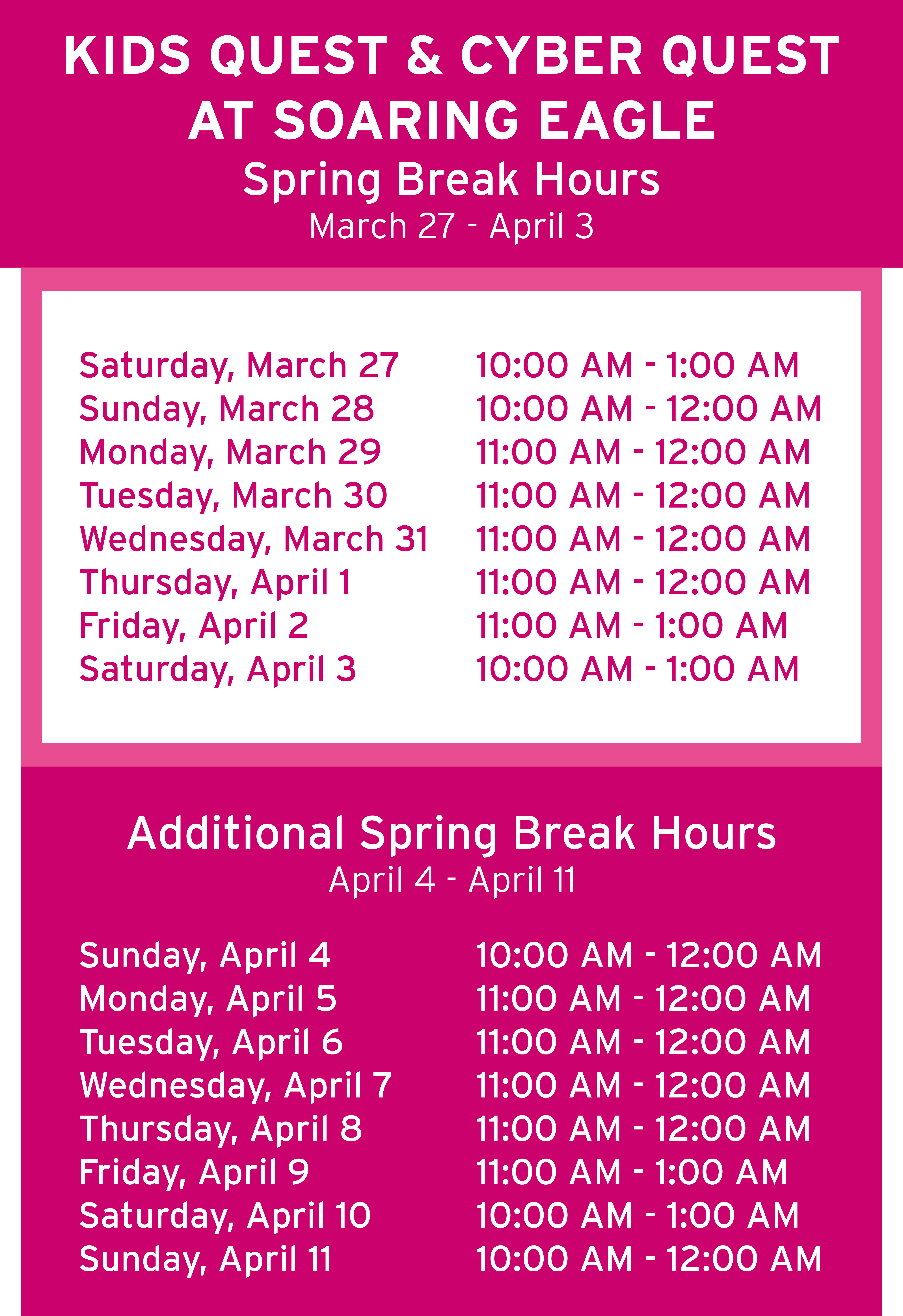 Soaring Eagle Spring Break Hours