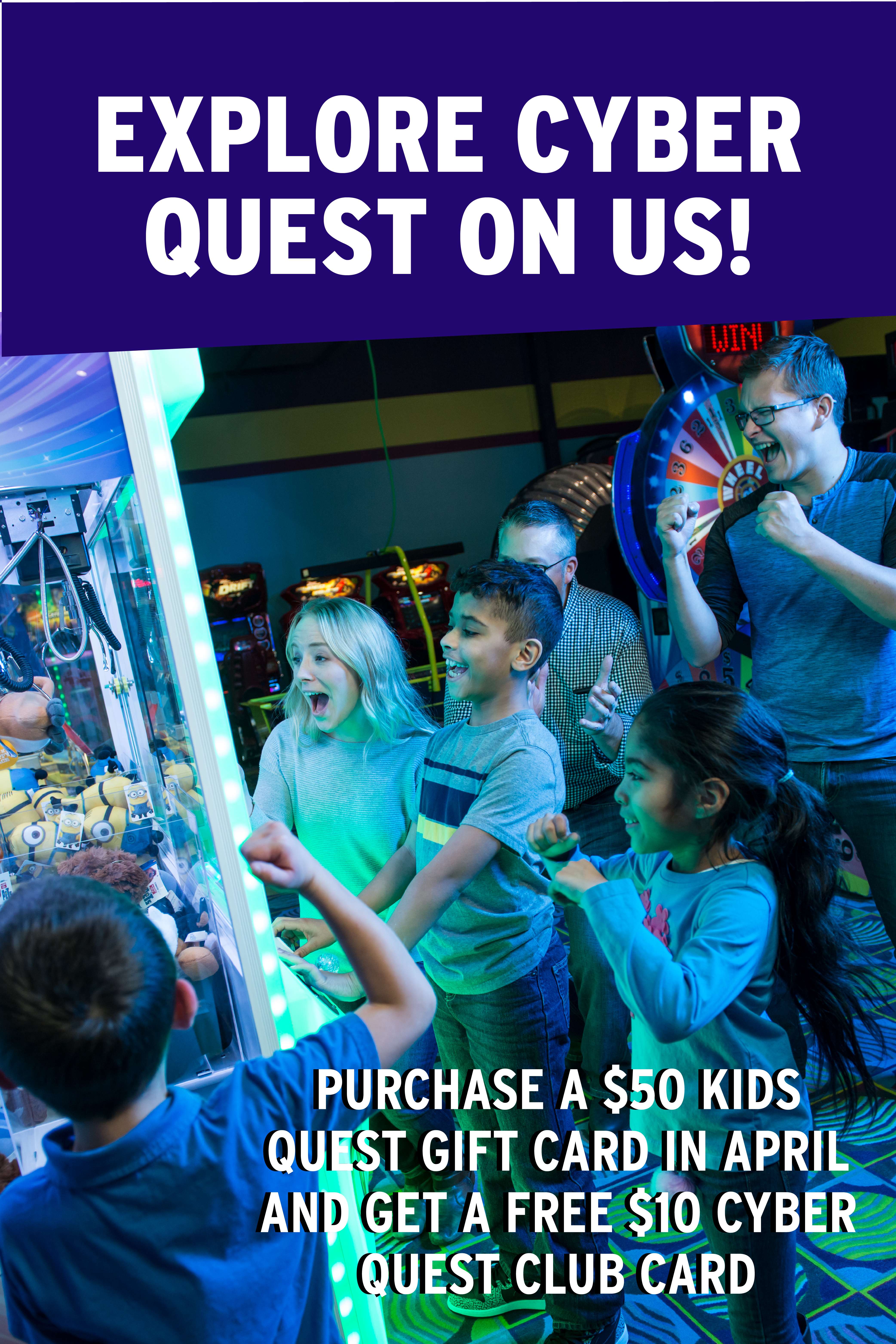 Visit any Kids Quest Las Vegas location and receive a special offer! Score a FREE $10 Cyber Quest Club Card when you purchase a $50 Ki...